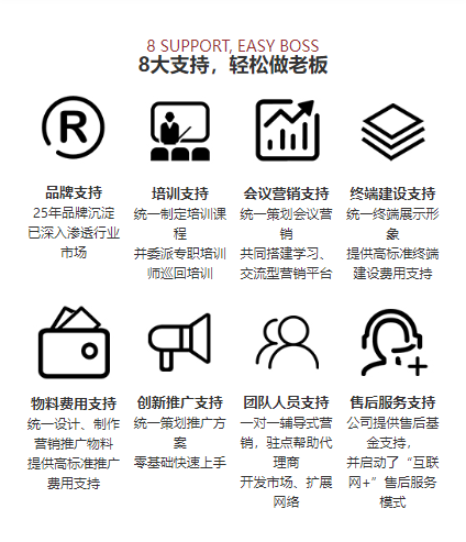6600多個銷售服務(wù)網(wǎng)點(diǎn)已遍布全國,系統(tǒng)的品牌營銷支持、健全的“輔導(dǎo)式”營銷模式、豐富的渠道管理模式 及經(jīng)驗、完善的售后服務(wù)體系、每年2-4次全國營銷峰會,30次以上區(qū)域培訓(xùn)交流峰會,確保加盟客戶能夠 零基礎(chǔ)上手,共同開創(chuàng)超人新格局!
